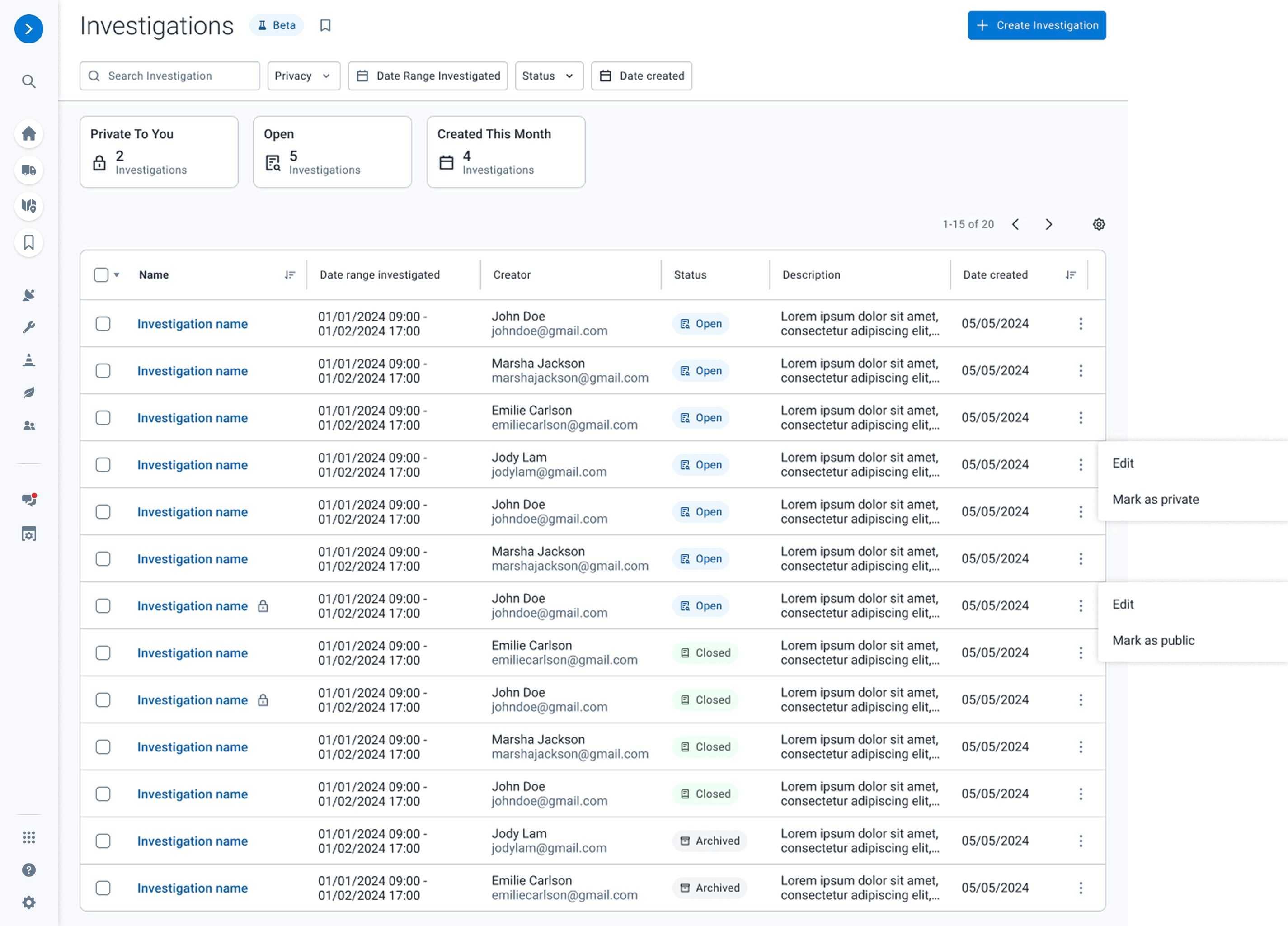 "When handling sensitive investigations, I want to control who can access and view specific information, so I can collaborate with stakeholders while maintaining privacy and compliance."
